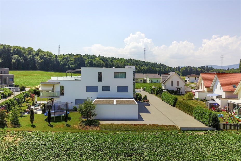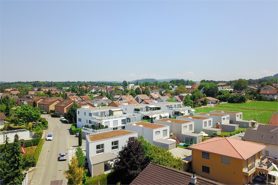 Bei der Planung wurde bewusst auf die ostseitige Überbauung, welche von uns als Steinäcker 1 in den Jahren 2010/2011 ebenfalls realisiert wurde, Rücksicht genommen. Dank der modernen Kuben mit Flachdächern hat sich die Überbauung gut in das bestehende Quartier eingepasst und die maximal möglichen Gebäudehöhen wurden dadurch nicht ausgereizt. Die Herausforderung der Überbauung für den Architekten stellte u. a. die Erschliessung mit Parkierung über eine interne Erschliessungsstrasse dar.